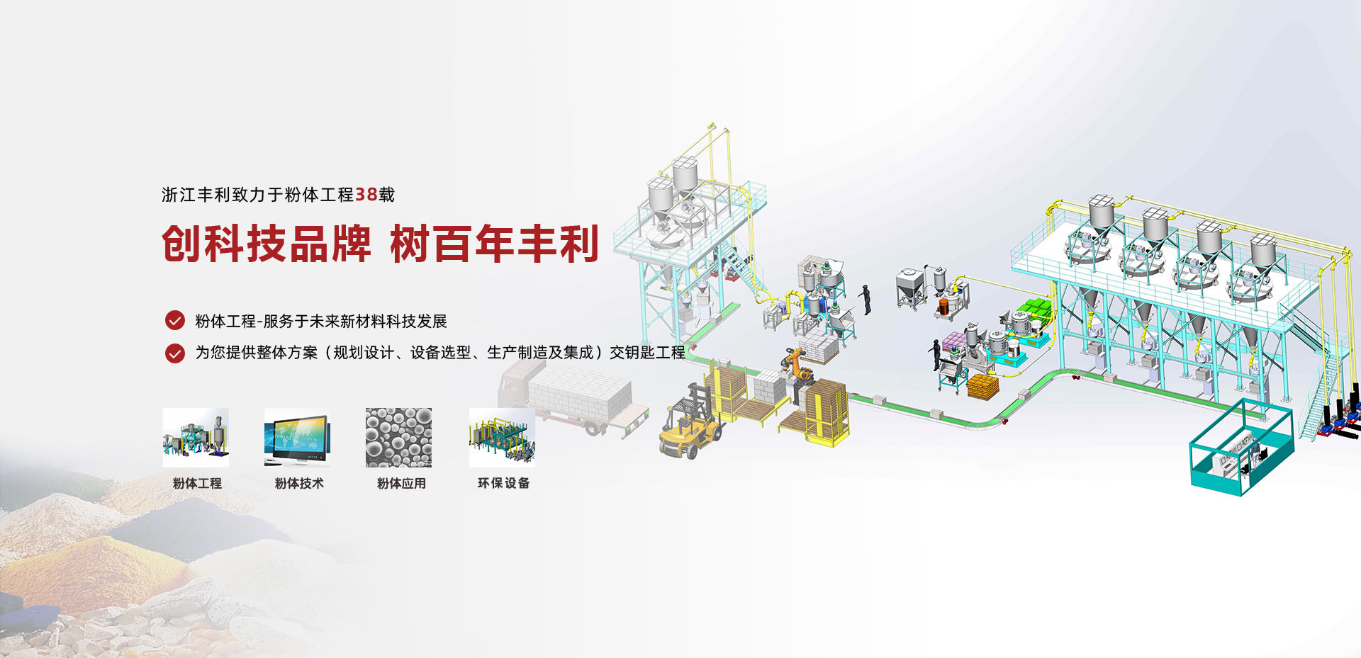 浙江豐利粉碎設備有限公司(前身為嵊州市機械廠)專注超微粉碎設備制造38年,集粉體(粉碎)工程研發、方案設計、技術服務、技術咨詢、生產制造、銷售應用為一體的科技型企業,公司擁有一支專注于粉體公司技術研發的創新團隊,為客戶提供解決粉體工程整體方案的一攬子服務。公司注重科技創新,近年來榮獲高新技術企業、省級企業技術中心、省級博士后工作站、浙江省標準創新型企業、浙江名牌產品、浙江知名商號、浙江省AAA級"守合同重信用"單位、中國化工裝備百強企業等榮譽稱號。公司引進德國超微粉體加工技術,與國內大專院校合作,消化吸收國內外先進技術,成功開發了二十大系列100多個品種的超微粉體設備。公司科技創新、科技成果碩果累累,擁有幾十項國家專利,實施國家、省、市各類科研計劃項目幾十項(其中國家重大技術開發專項,國際重點合作項目,省首臺套產品)。榮獲國家、省、市科技獎幾十項(其中省、部級十多項),參與制定國家、行業標準多項,編寫粉體專著多部。榮獲政府各類獎項及企業商譽、榮譽等200多項。目前公司累計有2萬多家客戶。產品廣泛應用于、化工、醫藥、冶金、食品、塑料、建材、非金屬礦、新材料(鋰電石墨負極)等行業的超微粉碎。 近年來,公司研發生產制造的鋰電石墨負極材料深加工成套設備已有數十條在國內外廣泛應用,獲得客戶的一致好評。公司擁有幾十年的粉體工程技術的豐富經驗。建有一支粉體工程設計由國內外教授、高工等行業專家組成的專業團隊,專注于粉體工程的研發,為客戶提供整體解決方案、一攬子服務。 公司擁有粉體技術測試中心,中心內裝備(包括檢測設備)齊全,供客戶現場試驗測試。為客戶提供技術咨詢、設備方案選型、委托設計、成套工程安裝及售后服務等針對不同物料的粉體加工,公司數據庫擁有幾百種各類粉體加工裝備的工藝流程及設計方案的圖例,為客戶提供一站式服務。 豐利技術為您提供整體方案,整合粉體工程上下游產業鏈,搭建粉體工程產業平臺,高端定制,項目總承包,為您量身定做,模塊化設計,走百家不如找一家,豐利為您提供一站式服務,匠心獨具,科技創新38載,專致粉體工程產業發展。豐利的目標是為客戶設計、制造先進的粉體裝備及技術,滿足客戶的需求,追求“高品質、高質量、用戶滿意”為宗旨。