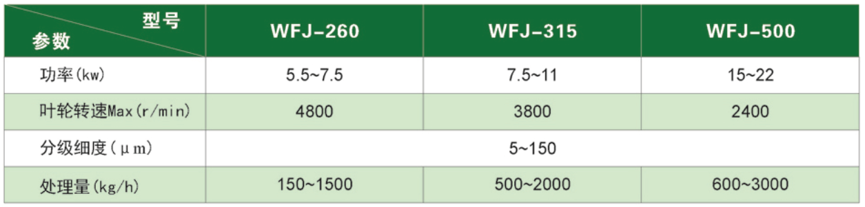 ③ 本機結構先進,分級可靠,產品粒度分布范圍窄,效率高,能耗低、經久耐用。