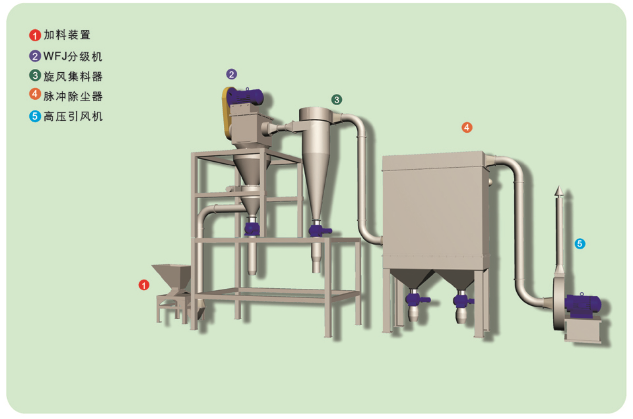 ④ 可與各種機械式粉碎機或氣流粉碎機組成閉回路系統,也可單獨進行物料分級處理。