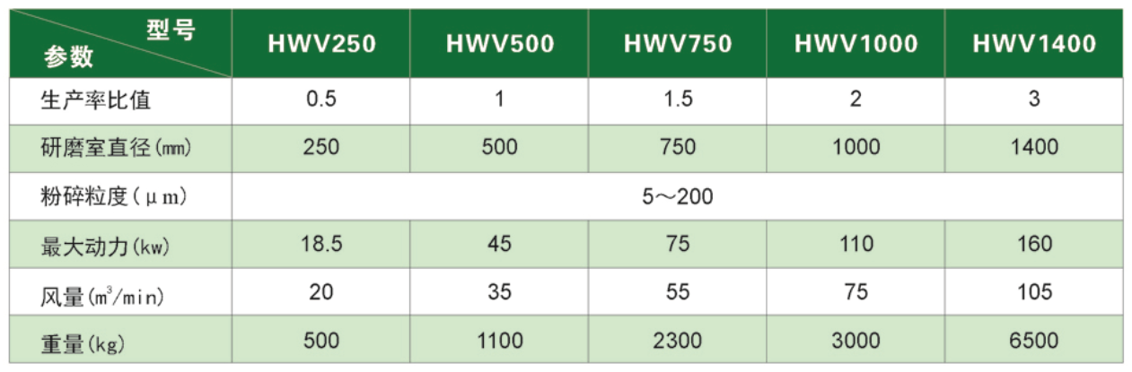 物料由上箱體頂部加入后,迅速被轉子上部預粉碎刀片打散,散向定子四壁,進入轉子和定子組成的粉碎區。轉子超高速旋轉產生的大量空氣流既受機內轉動和靜止部件的影響,又受機內的恰當導向,被轉變成無數個急轉的湍流。這些在粉碎區內為數眾多的空氣湍流,把物料催動,并加速到和空氣流同樣高的速度。然后,這些物料的運轉方向和速度卻都在瞬間改變,各物料顆粒相互碰撞,并在高速氣流中完成較理想的裂解,僅一小部分顆粒是通過機內運動和靜止部件的撞擊而細化的。物料顆粒在機內的整個逗留期間,總受空氣流環圍,因此,在超細粉磨過程中不可避免產生的熱量也被作為粉磨介質的空氣流帶走。上述粉碎原理,使HWV旋風磨特別適用于粉磨連同干燥操作。